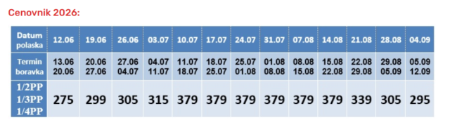 • Čanj 60 eura uz aranzman povratna karta / 40 eura jedan pravac i za decu do 10 godina povratna karta uz aranzman