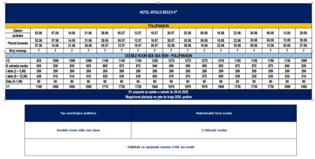 AKCIJA: 5% ZA UPLATE U CELOSTI ZA REZERVACIJE DO 28.02.2026.