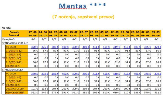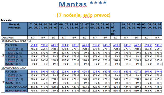 HOTEL MANTAS *** AVIONOM IZ NIŠA